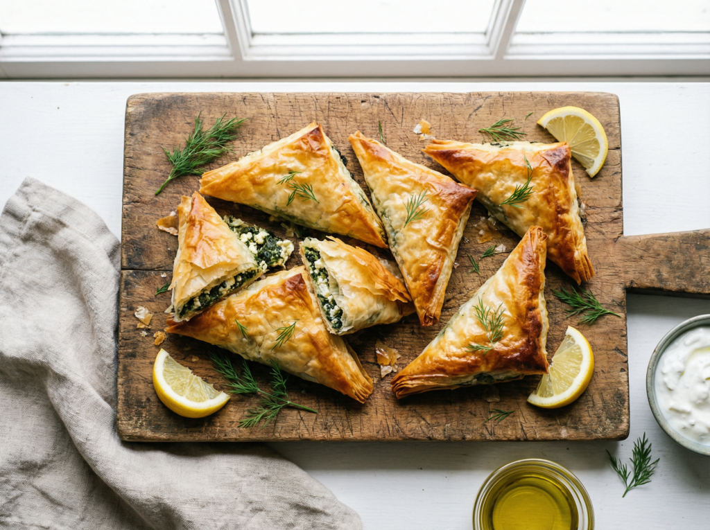 Ina Garten’s Dinner Spanakopitas pairs wonderfully with a simple green salad dressed with a light lemon vinaigrette, a side of roasted vegetables (like asparagus or cherry tomatoes), or a bowl of creamy tzatziki sauce for dipping. It’s a versatile dish that complements many Mediterranean-inspired sides, making it a perfect centerpiece for a Greek dinner recipe spread.